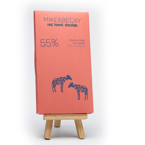55% dunkle Milchschokolade mit gerösteten Kakaosplittern