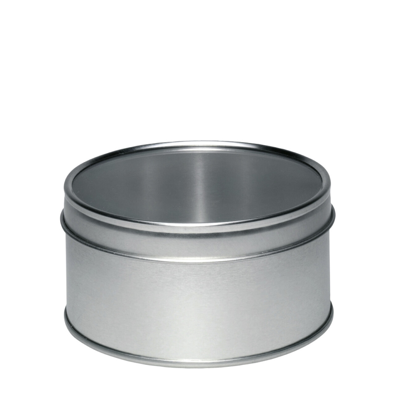 Stülpdeckeldose aus Weißblech mit aromaresistentem Sichtfenster im Deckel.